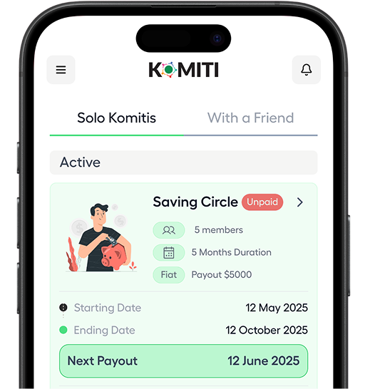 Join thousands using Komiti to save smarter — with flexible contributions, crypto options, and real-time trust. Whether solo or with friends, your goals are within reach.