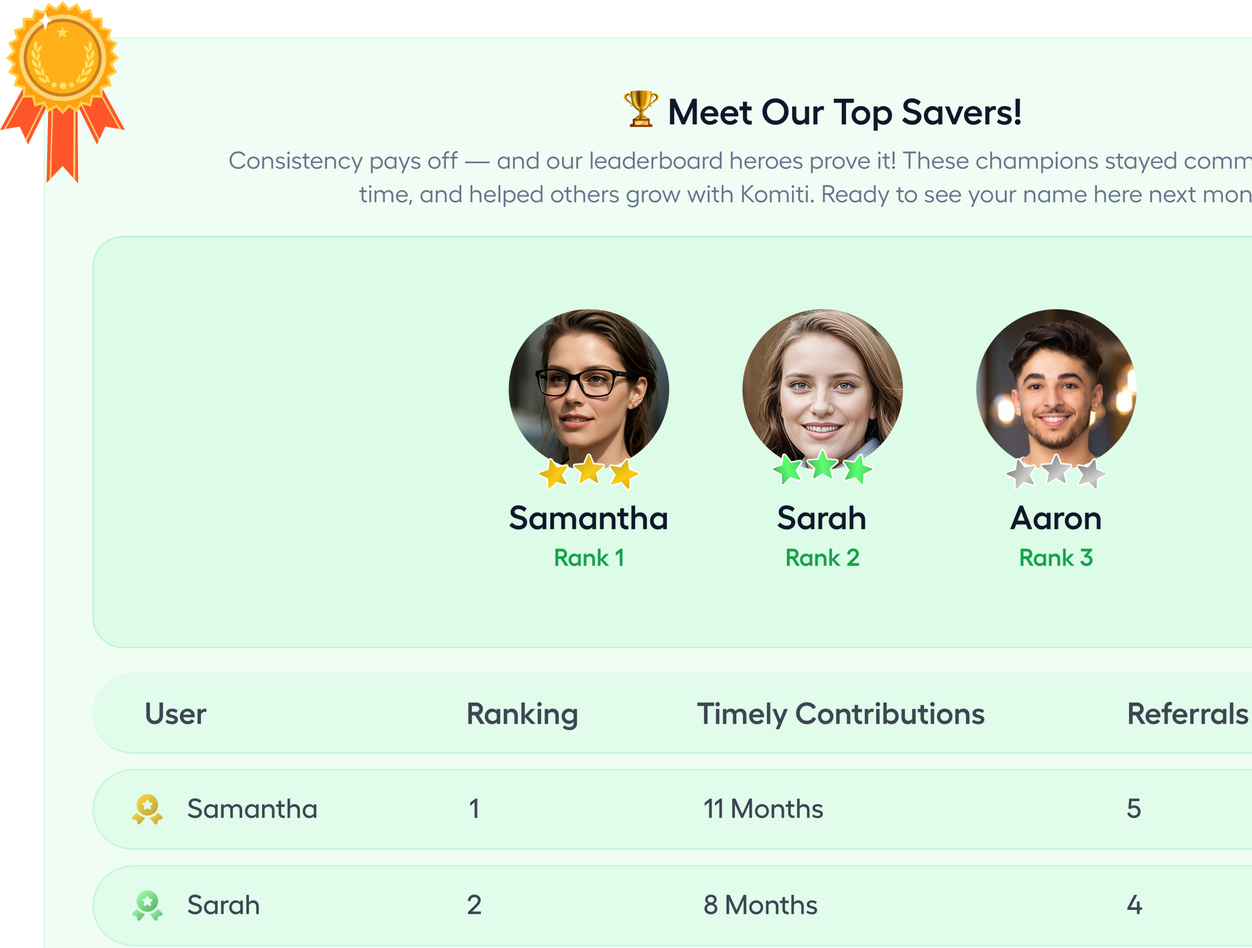 Earn your spot by saving consistently, inviting others to grow with you — and unlock exciting rewards, perks, and exclusive recognition at the top!